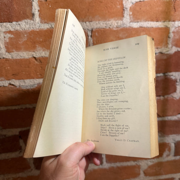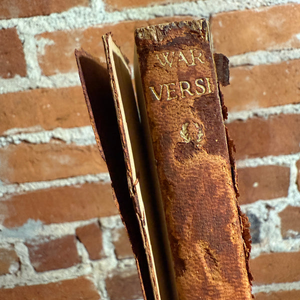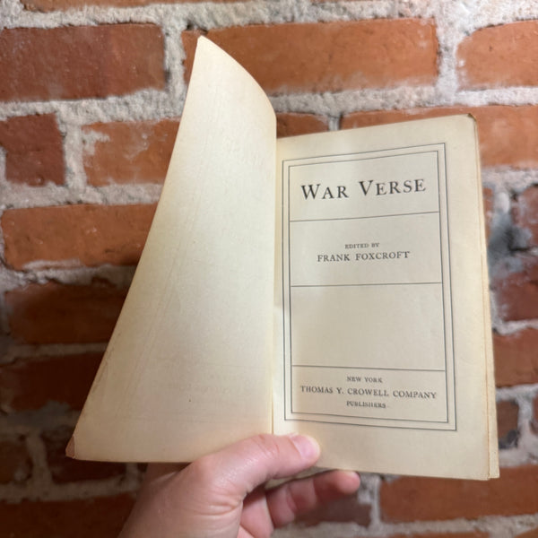 Blurb: “War Verse (1918), edited by Frank Foxcroft, in its 8th Thomas Y. Crowell Company hardback printing. The spine is fully split and the binding is coming apart, making this volume ideal for art projects, display, repurposing, or creative book crafts. A raw, timeworn survivor from the World War I era.”