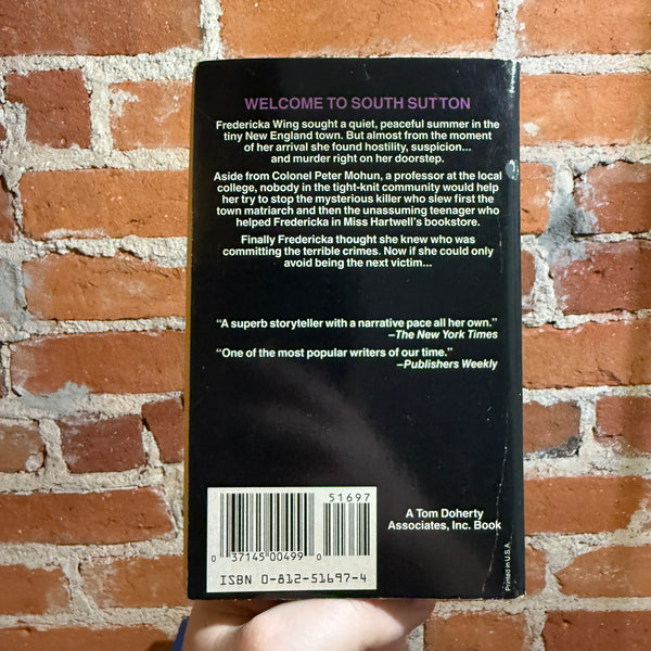 Aside from Colonel Peter Mohun, a professor at the local college, nobody in the tight-knit community would help her try to stop the mysterious killer who slew first the town matriarch and then the unassuming teenager who helped Fredericka in Miss Hartwell's bookstore.