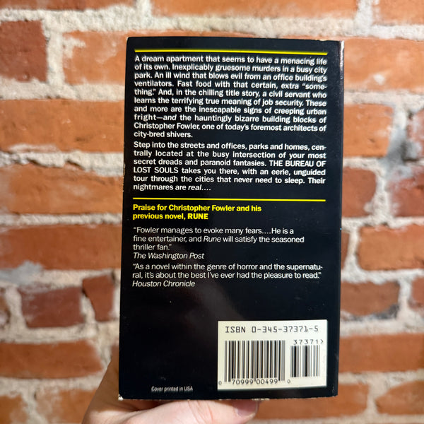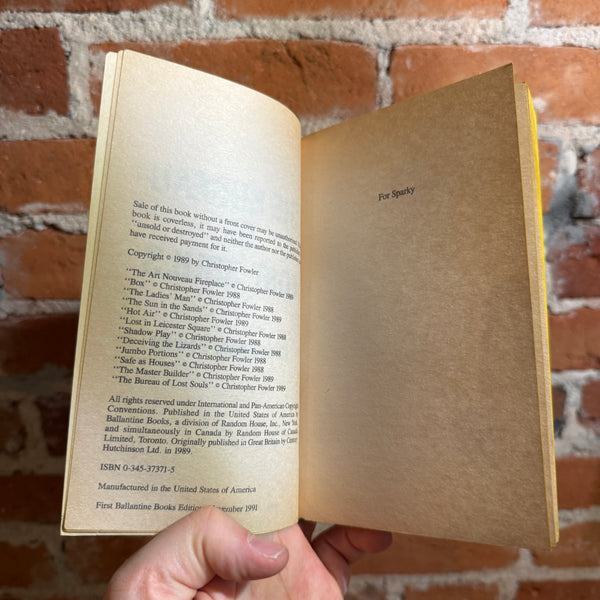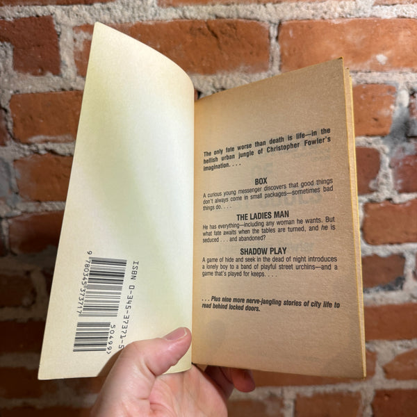 Blurb: “A dream apartment that seems to have a menacing life of its own. Inexplicably gruesome murders in a busy city park. An ill wind that blows evil from an office buildings ventilators. Fast food with that certain, extra "some thing" And, in the chilling title story, a civil servant who learns the terrifying true meaning of job security. These and more are the inescapable signs of creeping urban fright-and the hauntingly bizarre building blocks of Christopher Fowler, one of today's foremost architects of city-bred shivers.