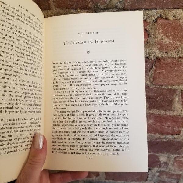 Basically, ESP means the reception in the mind of information that is not obtained through the senses. Its main types are telepathy, clairvoyance, and precognition. The forms of ESP fall into four major classifications: intuitions, realistic dreams, unrealistic dreams, and, more rarely, hallucinations. Mrs. Rhine illustrates each of these forms with dramatic case histories described in letters from and interviews with private individuals--cases that are typical in import but different in specific detail (10,066 of these four forms of cases were classified in her collection at the last count, in 1963). Along with these personal accounts, she shows the development of the research in typical laboratory experiments under controlled conditions, emphasizing the complications, difficulties, and rare triumphs that accompany research in such a pioneer area. Her book also deals with a separate but related extrasensory phenomenon, psychokinesis (known as PK)--the ability of the mind to influence matter directly--and gives specific examples.