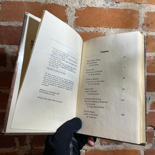Revel in such stories as "Tower of Ice" by Roger Zelazny. Jelerak, the evil sorcerer, had wrongly imprisoned Dil-vish in Hell. When Dilvish returns to exact vengeance, he finds Jelerak gone, and Ridley, the sorcerer's apprentice, in charge. And Ridley, terrified of his master's power, imprisons Dilvish once again-