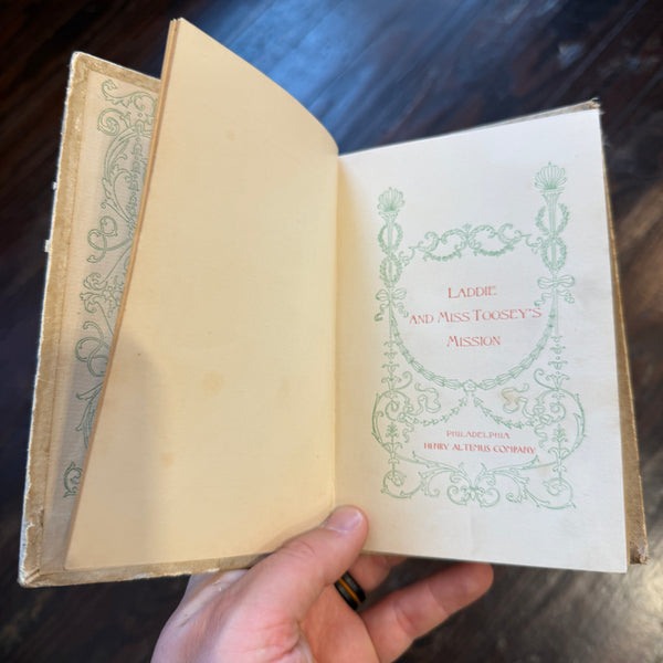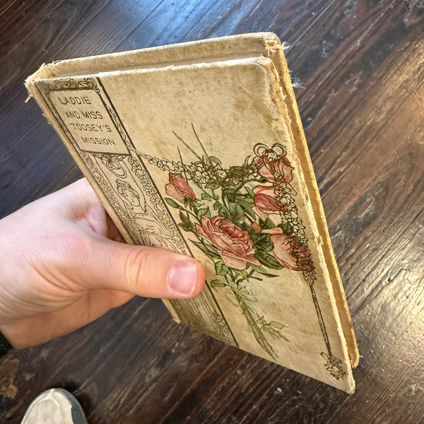 Blurb: “A charming antique children’s volume featuring delicate illustrations and decorative endpapers, Laddie and Miss Toosey’s Mission captures the gentle storytelling and moral tone typical of turn-of-the-century juvenile fiction. The book includes a illustrated frontispiece and ornamental title page, paired with simple, engaging prose aimed at younger readers.