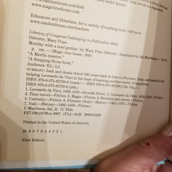 Blurb: JACK AND ANNIE are on a mission to save Merlin from his sorrows! Charged with finding the second of four secrets of happiness, the brother-and-sister team travel back in the magic tree house to the period known as the Renaissance. This time, Jack and Annie will need more than a research book and a magic wand. They'll need help from one of the greatest minds of all time. What will they learn from Leonardo da Vinci?
