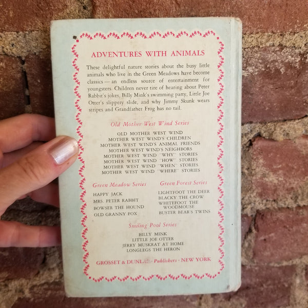 Blurb: Fifteen delightful fables from the world of the Green Forest will entertain and educate young readers as they find out why Johnny Chuck doesn't like Blacky the Crow and why Ol' Mistah Buzzard has a bald head. They'll learn what is in Mrs. Possum's big pocket and even discover who stole Mrs. Grouse's eggs.
