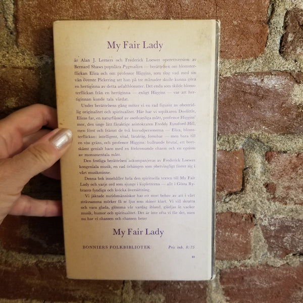 Blurb: This book is in Swedish! Illustrated by Cecil Beaton with black & white drawings. Adaptation and lyrics by Alan Jay Lerner. A play in two Acts based on Pygmalion by Shaw.