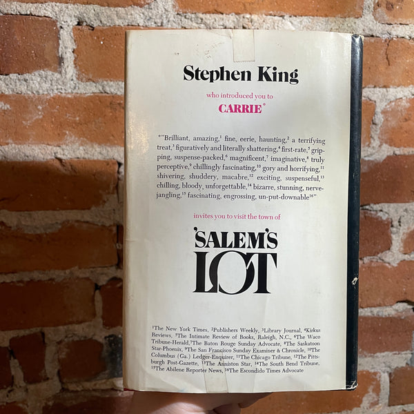 Blurb: “Stephen King's second novel,'Salem's Lot, is the story of a mundane town under siege from the forces of darkness. Considered one of the most terrifying vampire novels ever written, it cunningly probes the shadows of the human heart -- and the insular evils of small-town America.”