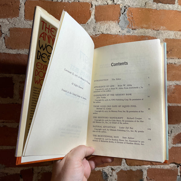 Editor Donald Wollheim is a true pioneer of science fiction. In 1943 he was responsible for the first SF anthology (now a rare collector's item and he may have produced more exceptional collections since that time than any other present-day editor. THE 1977 ANNUAL WORLD'S BEST SF continues the tradition of quality that he has established and presents the finest works of the past year by some of the most gifted authors writing in the genre. Some of the tales included are: