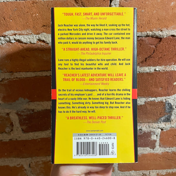 Jack Reacher was alone, the way he liked it, soaking up the hot, electric New York City night, watching a man cross the street to a parked Mercedes and drive it away. The car contained one million dollars in ransom money. And Edward Lane, the man who paid it, will pay even more to get his family back. Lane runs a highly illegal soldiers-for-hire operation. He will use any amount of money and any tool to find his beautiful wife and child. And then he’ll turn Jack Reacher loose with a vengeance—because Reacher is the best man hunter in the world.