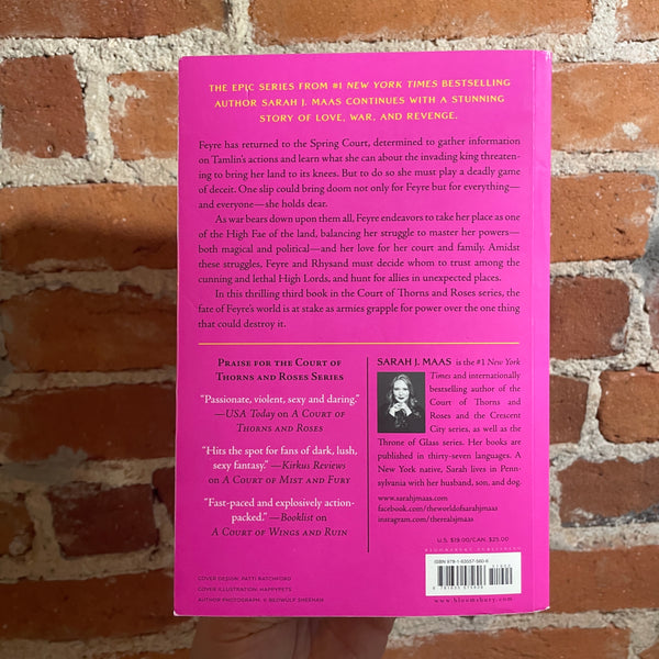 As war bears down upon them all, Feyre endeavors to take her place as one of the High Fae of the land, balancing her struggle to master her powers— both magical and political-and her love for her court and family. Amidst these struggles, Feyre and Rhysand must decide whom to trust among the cunning and lethal High Lords, and hunt for allies in unexpected places.