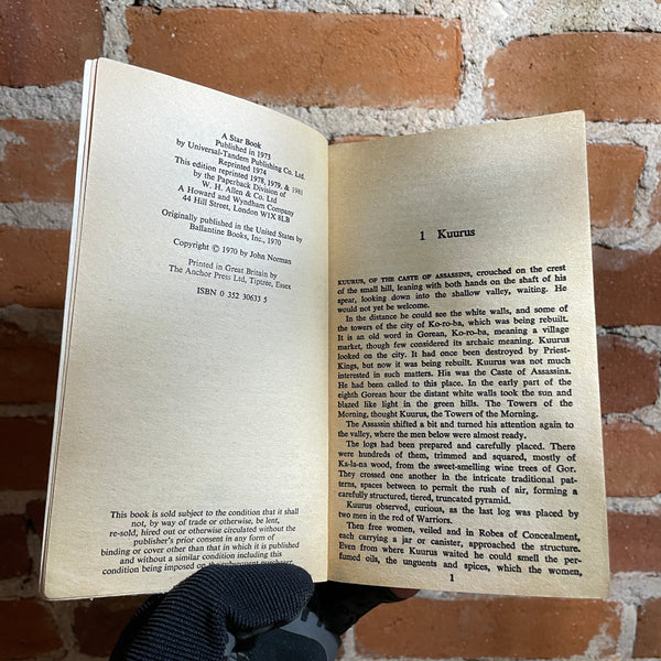 For in the newly rebuilt city of Ko-ro-ba, someone had foully murdered a young warrior with flaming red hair - the mark of Tarl Cabot of Ko-ro-ba, formerly of Earth. All guilty men feared a hunting Assassin, for none knew which was to be the victim.”