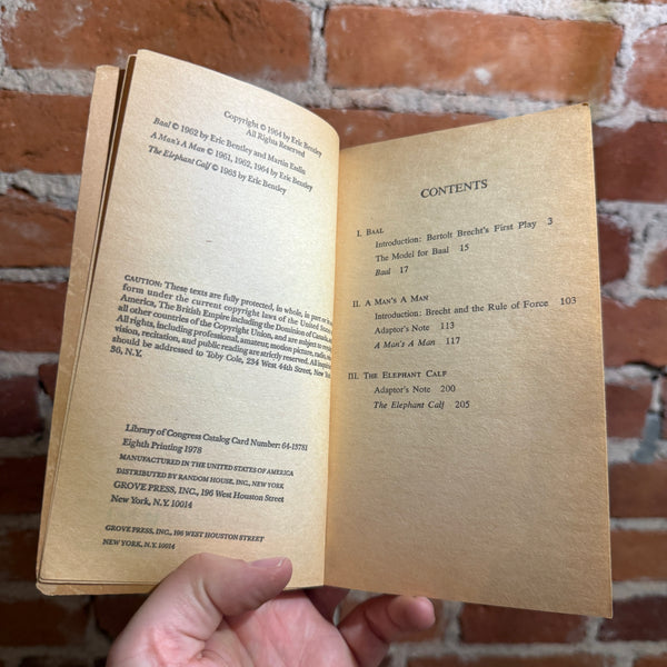 Baal, A Man’s Man, the Elephant Calf - Bertolt Brecht - 1978 8th Grove Press Black Cat Book Paperback