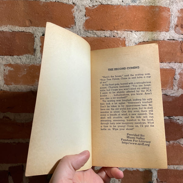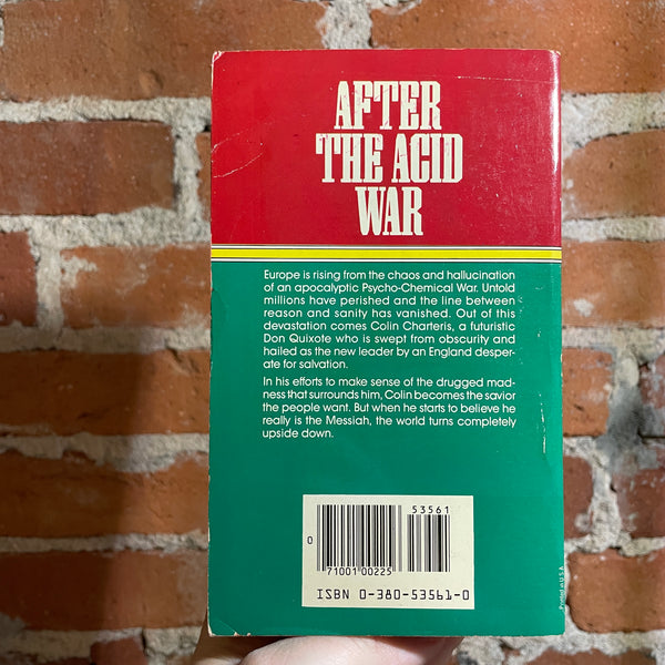 Blurb: “Europe is rising from the chaos and hallucination of an apocalyptic Psycho-Chemical War. Untold millions have perished and the line between: reason and sanity has vanished. Out of this devastation comes Colin Charteris, a futuristic Don Quixote who is swept from obscurity and hailed as the new leader by an England desperate for salvation.
