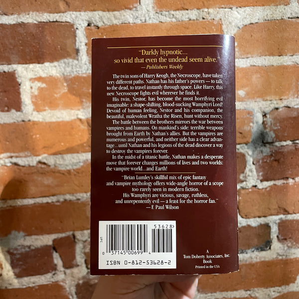 Blurb: “The twin sons of Harry Keogh, the Necroscope, have taken very different paths. Nathan has his father's powers — to talk to the dead, to travel instantly through space. Like Harry, this new Necroscope fights evil wherever he finds it.