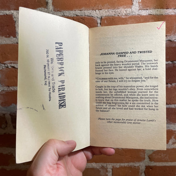 At the death of her twin sister, Johanna Benison had begun a journey of no return. Now, the unexpected arrival of Drummond, the domineering Chieftain shed believed executed long ago, threatened her precious independence. But soon her fear gave way to a soul-deep longing for the lover who stormed her castle and claimed her heart.