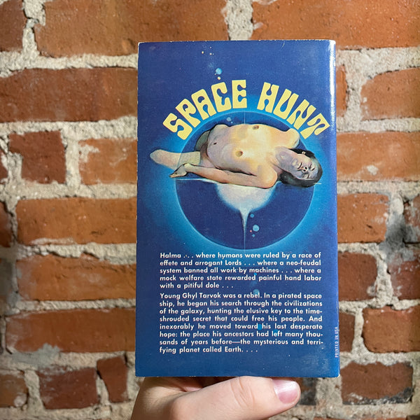Blurb: “Halma, a world where humans were ruled by a race of effete and arrogant lords; where a neo-feudal system banned all work by machines; where a mock welfare state rewarded painful hand labor with a pitiful dole.Young Ghyl Tarvok was a rebel. In a pirated spaceship, he began his search through the civilizations of the galaxy, hunting the elusive key to the time-shrouded secret that could free his people. Inexorably he moved toward his last desperate hope: the place his ancestors had left many thousands of years before, the mysterious and terrifying planet called Earth.”