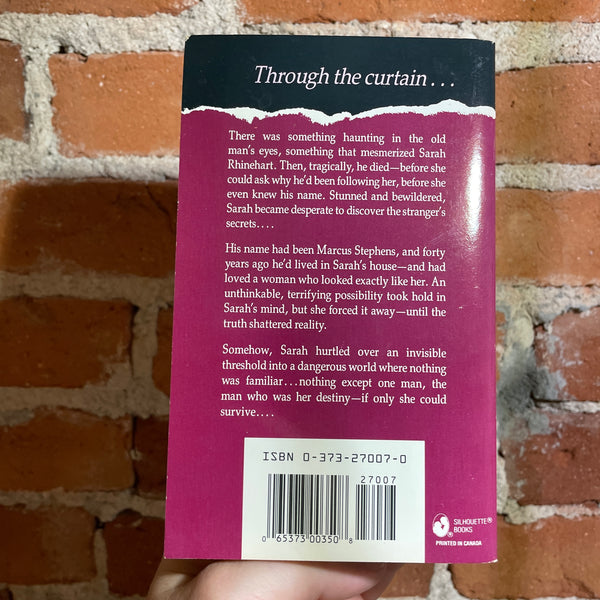 Somehow, Sarah hurtled over an invisible threshold into a dangerous world where nothing was familiar... nothing except one man, the man who was her destiny-if only she could survive....”