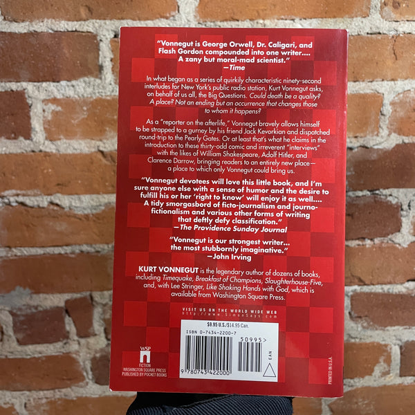 As a "reporter on the afterlife," Vonnegut bravely allows himself to be strapped to a gurney by his friend Jack Kevorkian and dispatched round-trip to the Pearly Gates. Or at least that's what he claims in the introduction to these thirty-odd comic and irreverent "interviews" with the likes of William Shakespeare, Adolf Hitler, and Clarence Darrow, bringing readers to an entirely new place— a place to which only Vonnegut could bring us.