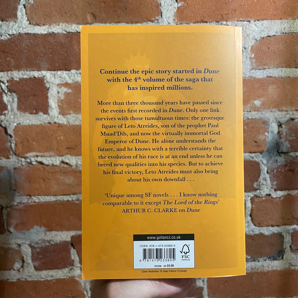 Leto's rule is not a benevolent one. His transformation has made not only his appearance but his morality inhuman. A rebellion, led by Siona, a member of the Atreides family, has risen to oppose the despot's rule. But Siona is unaware that Leto's vision of a Golden Path for humanity requires her to fulfill a destiny she never wanted--or could possibly conceive....