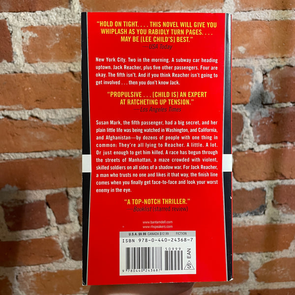 They're all lying to Reacher. A little. A lot. Or just enough to get him killed. A race has begun through the streets of Manhattan, a maze crowded with violent, skilled soldiers on all sides of a shadow war. For Jack Reacher, a man who trusts no one and likes it that way, the finish line comes when you finally get face-to-face and look your worst enemy in the eye.”