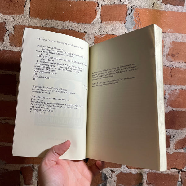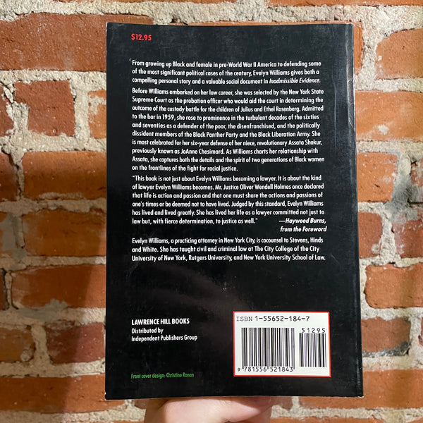 Blurb: “From growing up Black and female in pre-World War Il America to defending some of the most significant political cases of the century, Evelyn Williams gives both a compelling personal story and a valuable social document in Inadmissible Evidence.