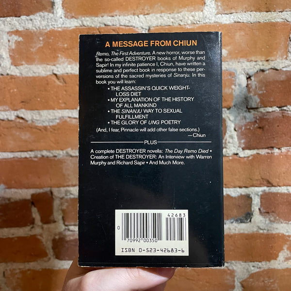 Remo, The First Adventure. A new horror, worse than the so-called DESTROYER books of Murphy and Sapir! In my infinite patience I, Chiun, have written a sublime and perfect book in response to these perversions of the sacred mysteries of Sinanju. In this book you will learn: