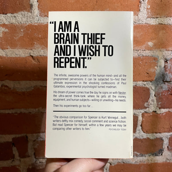 His dream of power comes true the day he signs on with Nester, the ultra-secret think-tank where he gets all the money, equipment, and human subjects-willing or unwilling-he needs.