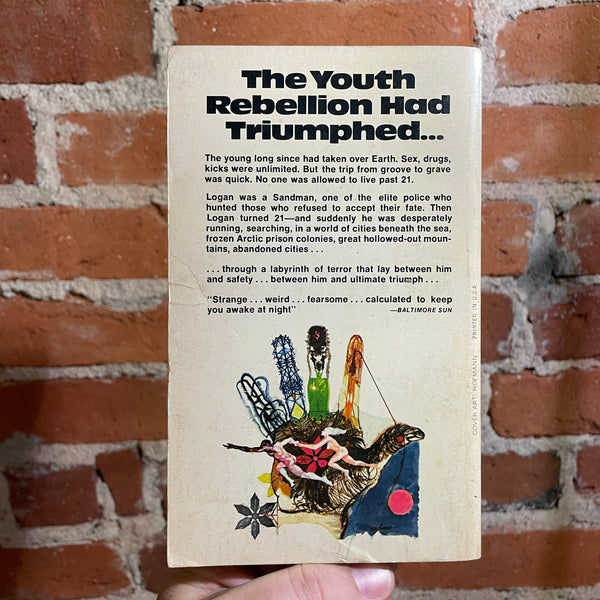 Logan was a Sandman, one of the elite police who hunted those who refused to accept their fate. Then Logan turned 21—and suddenly he was desperately running, searching, in a world of cities beneath the sea, frozen Arctic prison colonies, great hollowed-out moun-tains, abandoned cities...