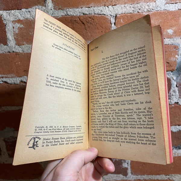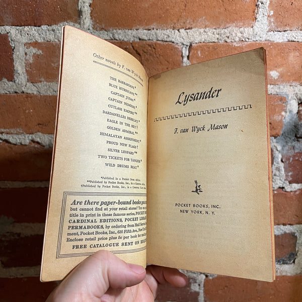 Step into the world of high-stakes intrigue and historical adventure with Lysander by F. van Wyck Mason. Known for his masterful blend of action and historical depth, Mason crafts a gripping tale of espionage, warfare, and shifting allegiances set against a richly detailed backdrop. This 1957 Pocket Books edition, featuring a striking James Meese cover, is a must-have for collectors and fans of classic historical fiction. Whether you’re drawn to political maneuvering or battlefield drama, Lysander delivers a thrilling ride through history.