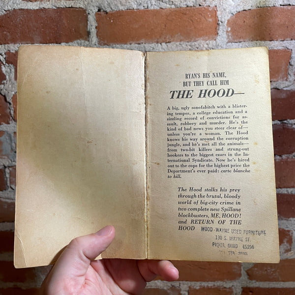 ME, HOOD! and RETURN OF THE HOOD, two new pulse-racers never before published in the U.S. They're vintage Spillane —brutal, sexy, unbeatable.”