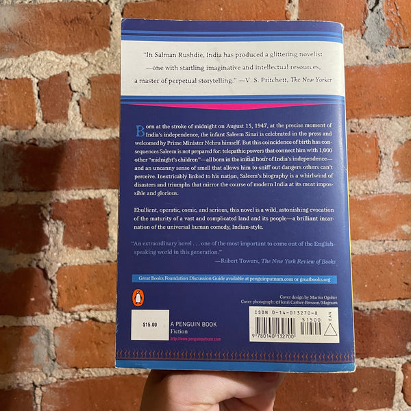 Blurb: “Born at the stroke of midnight on August 15, 1947, at the precise moment of India's independence, the infant Saleem Sinai is celebrated in the press and welcomed by Prime Minister Nehru himself.