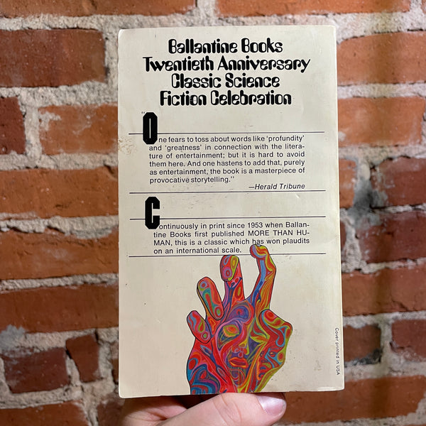 In this genre-bending novel - among the first to have launched scifi into the arena of literature - one of the great imaginers of the twentieth century tells a story as mind-blowing as any controlled substance and as affecting as a glimpse into a stranger's soul. For as the protagonists of More Than Human struggle to find who they are and whether they are meant to help humanity or destroy it. Theodore Sturgeon explores questions of power and morality, individuality and belonging, with suspense, pathos, and a lyricism rarely seen in science fiction.”