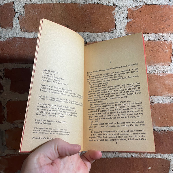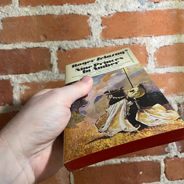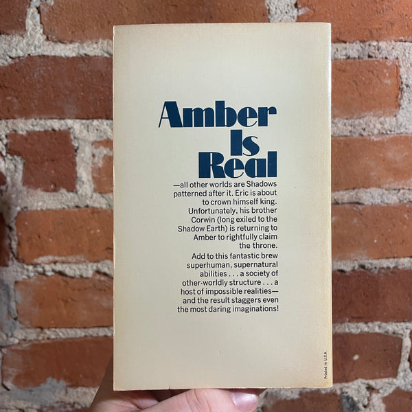 Unfortunately, his brother Corwin (long exiled to the Shadow Earth) is returning to Amber to rightfully claim the throne. Add to this fantastic brew superhuman, supernatural abilities... a society of other-worldly structure... a host of impossible realities-and the result staggers even the most daring imaginations!“