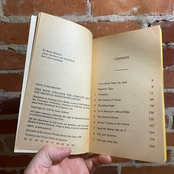Some of Mr. Asimov's TOMORROWS may give you the shivers; others may cause resounding guffaws; but all of them will give you furiously to think, because there's a lethal germ of probability on every page of every Asimov TOMORROW.