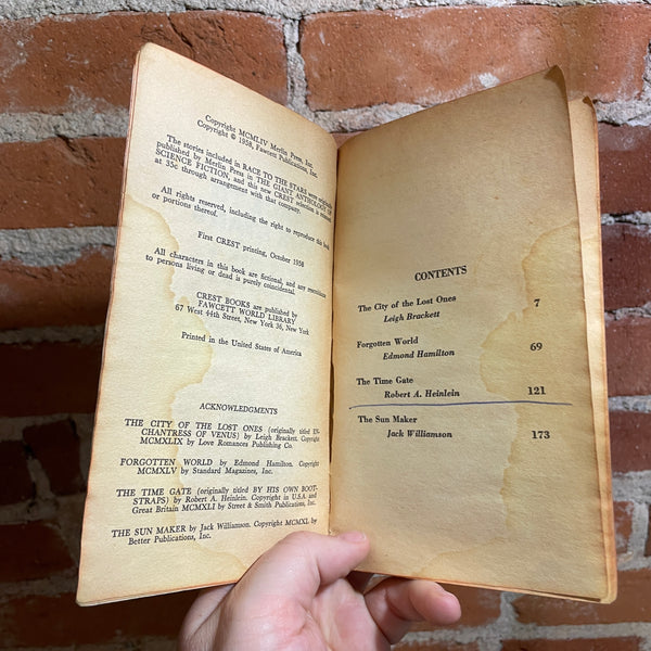 Blurb: “ESCAPE from the workaday burdens of this tired earth into the timeless wonders of new worlds and unborn TOMORROWS.