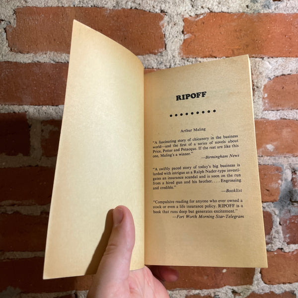 Blurb: “Brockton Potter, of the firm Price, Potter and Petacque, had just received an anonymous telephone call at 1 A.M. from a drunk. "I've got some information about Interlake General, the man said. And then he added, "I work for Interlake and I know something, And finally: