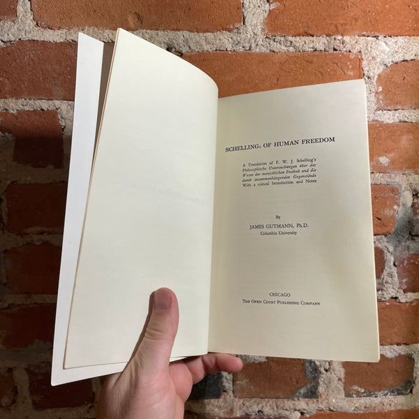 Schelling: Of Human Freedom - James Gutmann - 1936 Open Court Publishing Company Softcover - Rare Existentialism Text