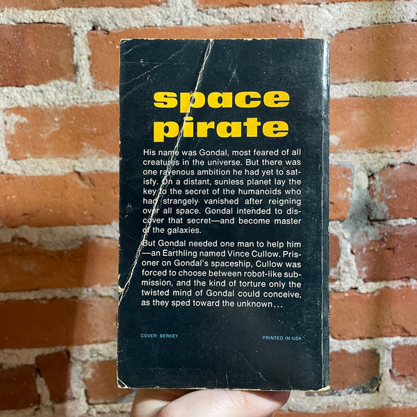 —an Earthling named Vince Cullow. Prisoner on Gondal's spaceship, Cullow was forced to choose between robot-like sub-mission, and the kind of torture only the twisted mind of Gondal could conceive, as they sped toward the unknown...”