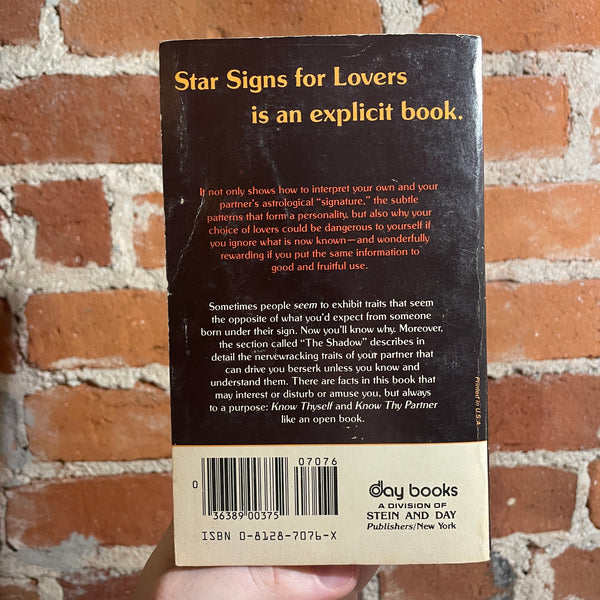 Blurb: “If not only shows how to interpret your own and your partner's astrological "signature," the subtle patterns that form a personality, but also why your choice of lovers could be dangerous to yourself if you ignore what is now known-and wonderfully rewarding if you put the same information to good and fruitful use.