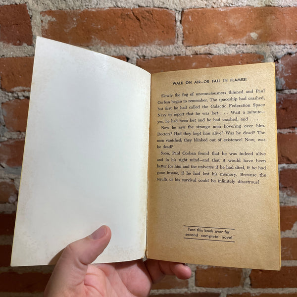 Soon, Paul Corban found that he was indeed alive and in his right mind-and that it would have been better for him and the universe if he had died, if he had gone insane, if he had lost his memory, Because the results of his survival could be infinitely disastrous!