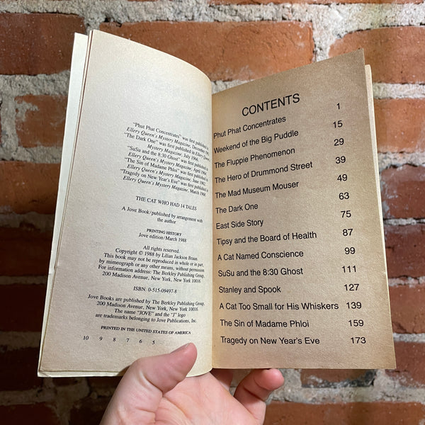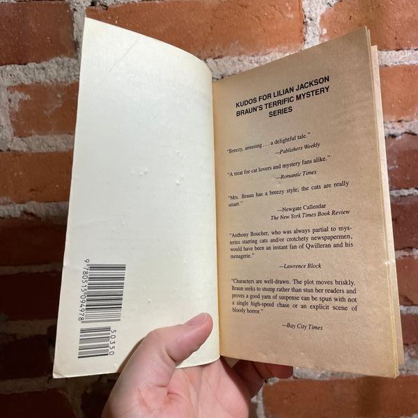 Blurb: “A courageous Siamese bags a cunning cat burglar...a country kitty proves a stumbling block in a violent murder... and an intuitive feline's premonition helps soive the case of the missing antique dealer.”