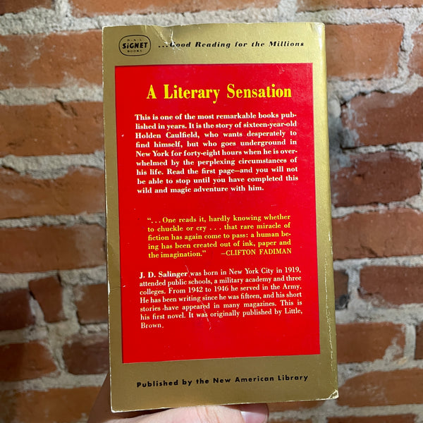 Blurb: Since his debut in 1951 as The Catcher in the Rye, Holden Caulfield has been synonymous with "cynical adolescent." Holden narrates the story of a couple of days in his sixteen-year-old life, just after he's been expelled from prep school, in a slang that sounds edgy even today and keeps this novel on banned book lists. It begins,