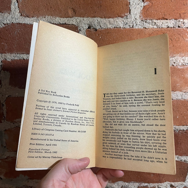 Blurb: “One day, the Reverend Hornswell Hake had nothing worse to contend with than the customary power shortages and his routine pastoral chores, such as counseling the vivacious Alys Brant-and her husbands and wife. At nearly forty, his life was placid, almost humdrum.
