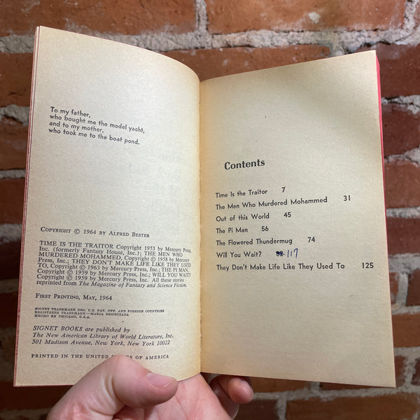 Blurb: “Alfred Bester writes fiction that is offbeat and intensely imaginative. In THE DARK SIDE OF THE EARTH, a volume that includes his new novella and five short stories, Mr. Bester is at his most inventive.