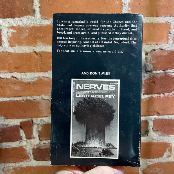 Blurb: “It was a remarkable world-for the Church and the State had become one-one supreme Authority that encouraged, indeed, ordered its people to breed, and breed, and breed again. And punished if they did not...
