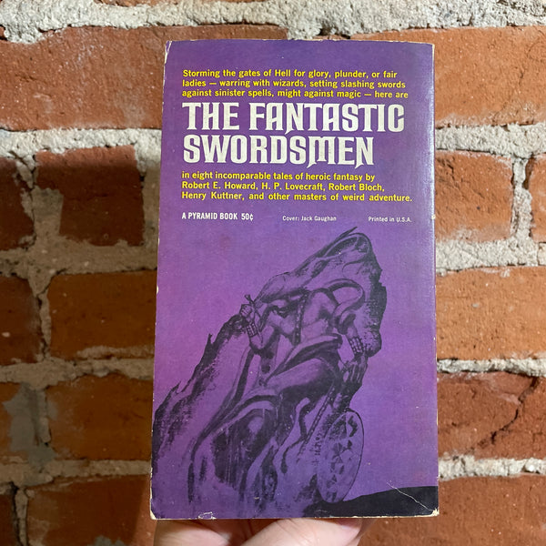 Blurb: “Storming the gates of Hell for glory, plunder, or fair ladies - warring with wizards, setting slashing swords against sinister spells, might against magic - here are THE FANTASTIC SWORDSMEN in eight incomparable tales of heroic fantasy by Robert E. Howard, H. P. Lovecraft, Robert Bloch, Henry Kuttner, and other masters of weird adventure.”