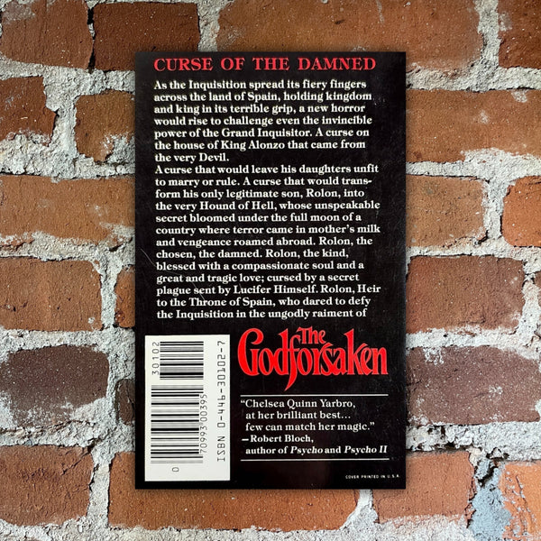 A curse that would leave his daughters unfit to marry or rule. A curse that would transform his only legitimate son, Rolon, into the very Hound of Hell, whose unspeakable secret bloomed under the full moon of a country where terror came in mother's milk and vengeance roamed abroad. Rolon, the chosen, the damned. Rolon, the kind, blessed with a compassionate soul and a great and tragic love; cursed by a secret plague sent by Lucifer Himself. Rolon, Heir to the Throne of Spain, who dared to defy the Inquisition in the ungodly raiment of the Godforsaken.