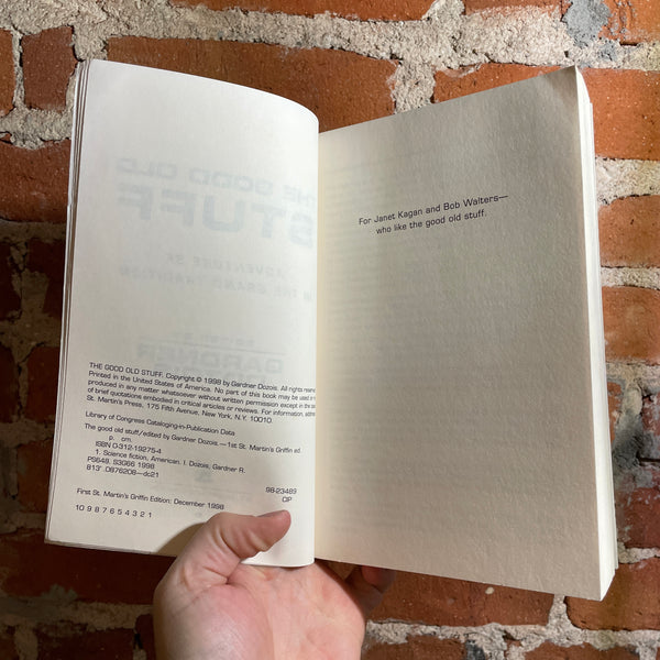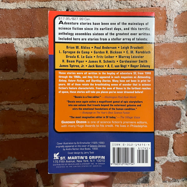 Blurb: “This is the first of two companion anthologies compiled by SF's leading short fiction editor, Gardner Dozois. Although Dozois is notable for tastes that are skewed heavily toward the literary side of the science fiction spectrum, his avowed purpose with this volume is to collect the seminal works of good old-fashioned adventure SF. Dozois has limited his stomping grounds to the years between 1948 and 1971, though the bulk of these stories were first published in the 1950s, a period he calls "the second great Age of the Space Opera." The book starts off with A.E. van Vogt's classic "The Rull" and continues with 16 more adventure stories, culminating with James Tiptree Jr.'s "Mother in the Sky with Diamonds." In between are works by James H. Schmitz, L. Sprague de Camp, Jack Vance, C.M. Kornbluth, Leigh Brackett, Poul Anderson, Gordon R. Dickson, Cordwainer Smith, Brian W. Aldiss, H. Beam Piper, Ursula K. Le Guin, Fritz Leiber, and Roger Zelazny. Although The Good Old Stuff may contain some tough moments for contemporary readers--the tales here are, after all, a product of times when race and gender discrimination were more prominent than they are today--this is an excellent collection of some of the best SF, adventure or otherwise. --Craig E. Engler”