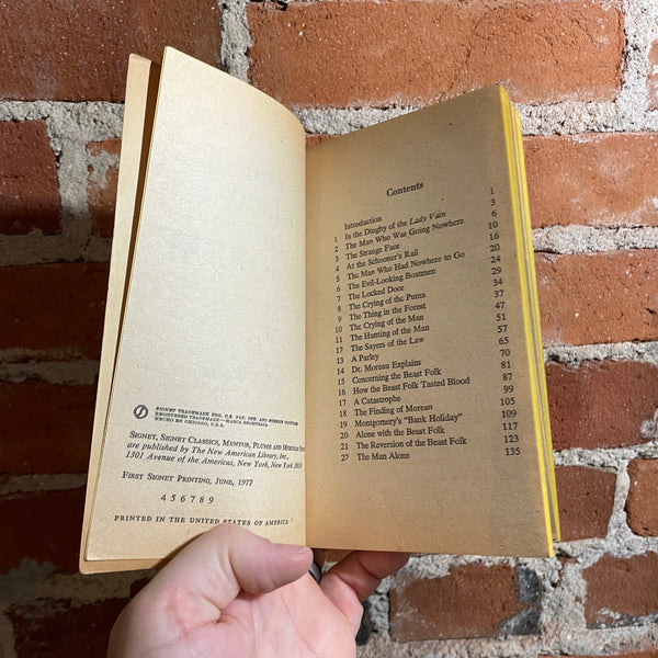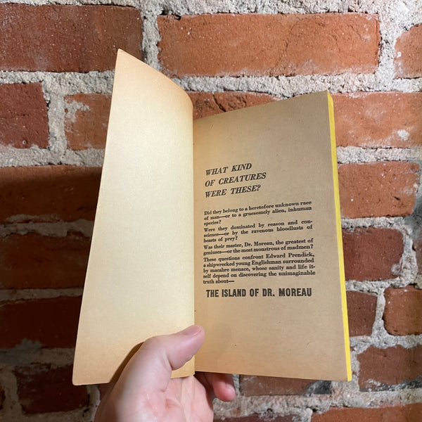 Blurb: “A LONELY ISLAND IN THE PACIFIC, THE SINISTER SCIENTIST WHO RULES IT, AND THE STRANGE BEINGS WHO DWELL THERE...