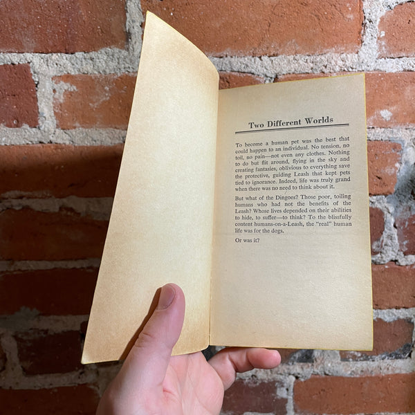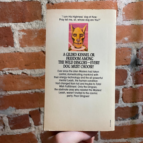 Ever since the alien Masters had taken control, domesticating mankind with their energy-technology and the all-powerful mental Leash, the human condition had changed from toil and trouble to Total Wish Fulfillment. Only the Dingoes, the obstinate ones who resisted the Masters' Leash, weren't invited to the cosmic party. Poor Dingoes!”