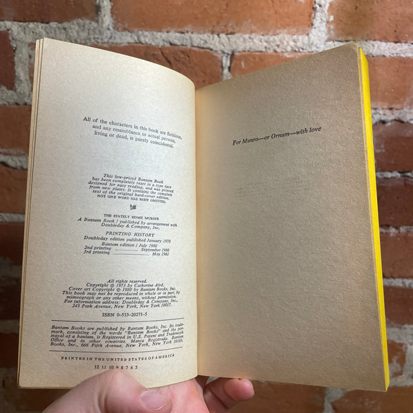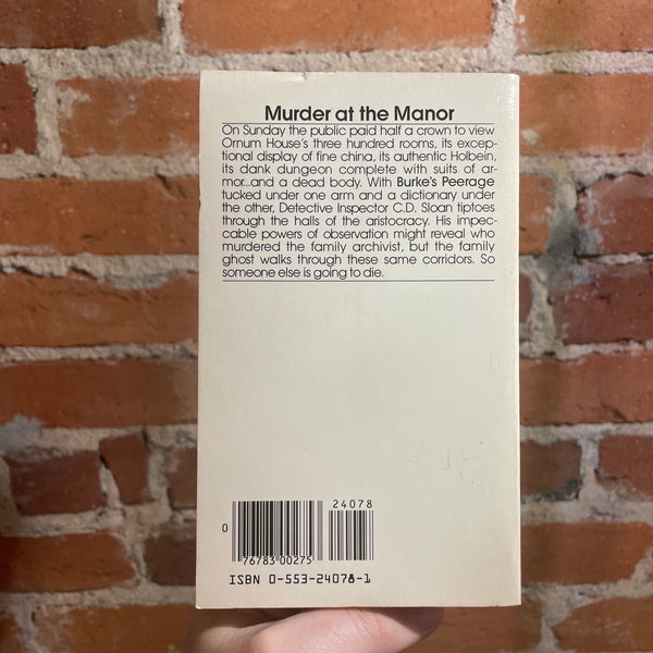 Blurb: “On Sunday the public paid half a crown to view Ornum House's three hundred rooms, its exceptional display of fine china, its authentic Holbein, its dank dungeon complete with suits of ar-mor..and a dead body. With Burke's Peerage tucked under one arm and a dictionary under the other, Detective Inspector C.D. Sloan tiptoes through the halls of the aristocracy. His impeccable powers of observation might reveal who murdered the family archivist, but the family ghost walks through these same corridors. So someone else is going to die.”